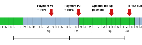 For individuals and entities with a February year end, this is due at the end of September, for all other entities with a year end other than February, this provisional tax payment is due 6 months after year end.